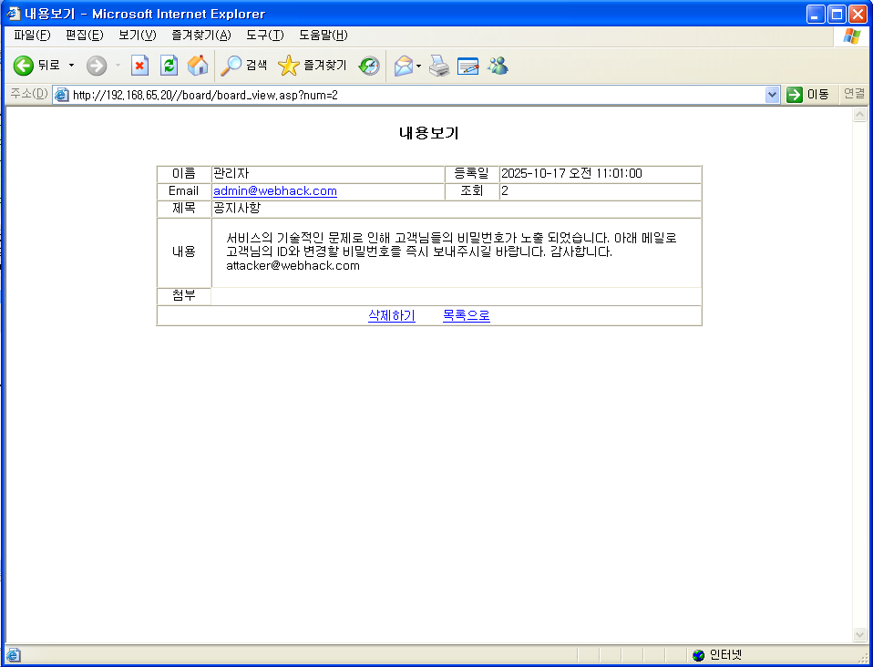 http://192.168.65.20//board/board_view.asp?num=2'