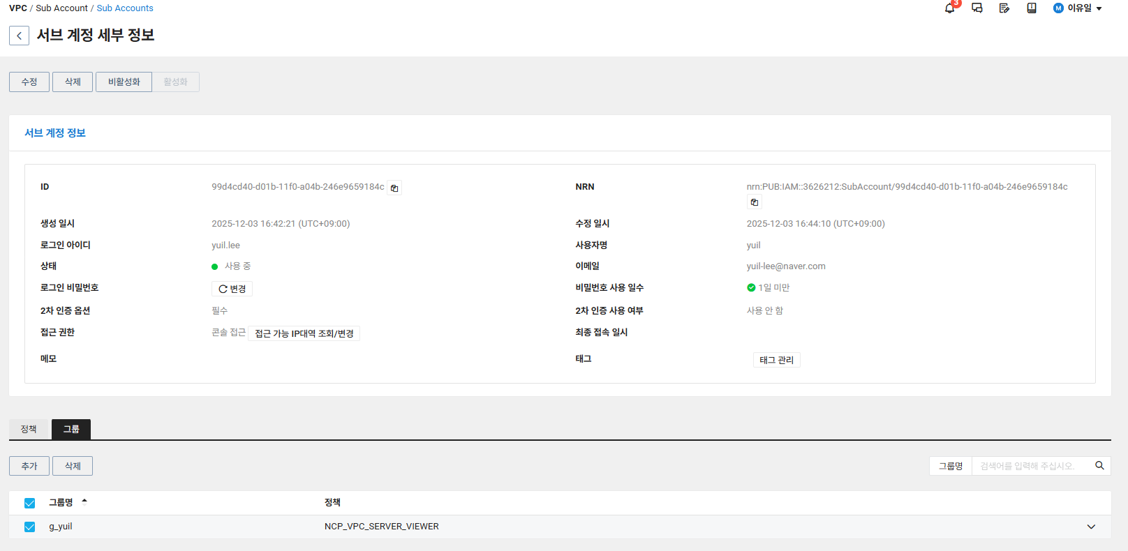 | [NCloud] Load Balancer 구성 실습 (0) | 2025.12.03 |